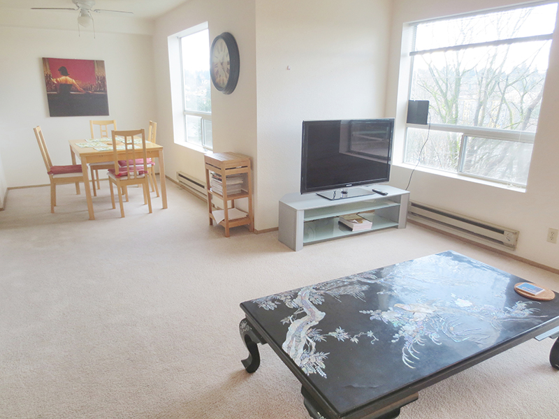 This bright, upgraded apartment is conveniently located, with a view of the city and University Village, an upscale, open-air